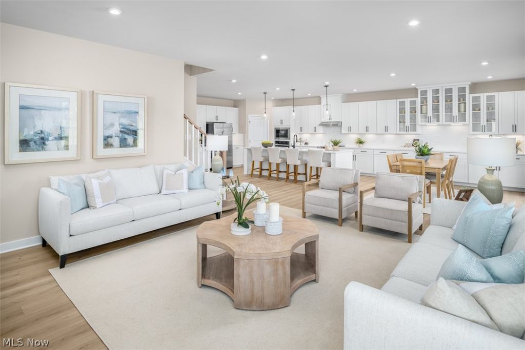 Welcome to Oak Park at Eastlake Meadows, where modern design meets everyday convenience. This beautifully appointed home features white cabinetry and quartz kitchen countertops, creating a bright and timeless kitchen ideal for entertaining. The spacious LVP-floored great room offers durability and style, while the rear covered porch overlooks a generous .8-acre homesite, perfect for relaxing or hosting gatherings. The home includes a 3-car garage and a finished basement with a full bathroom, offering flexible space for a recreation area, guest suite, or home office. The luxurious owner's bath showcases a Roman shower, adding a spa-like retreat to your daily routine. Located in the Jackson Local School District, this property provides excellent schools along with exceptional convenience?just minutes from The Strip's shopping, dining, and entertainment, and offering easy highway access for commuting and travel. Don't miss the opportunity to own a thoughtfully designed home in one of Jackson Township's most desirable communities.